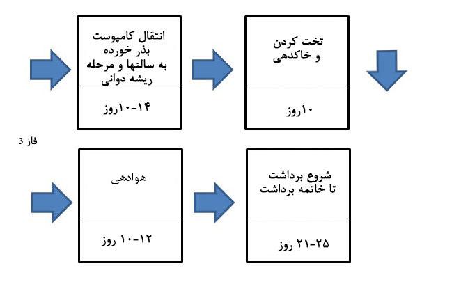 مراحل تولید کامپوست و قارچ خوراکی و زمانبندی آن: